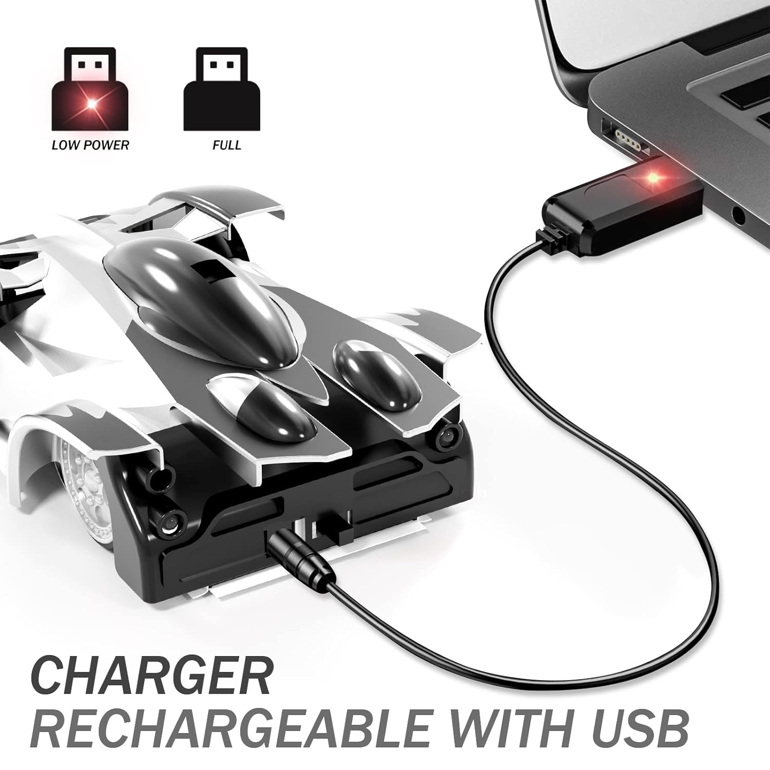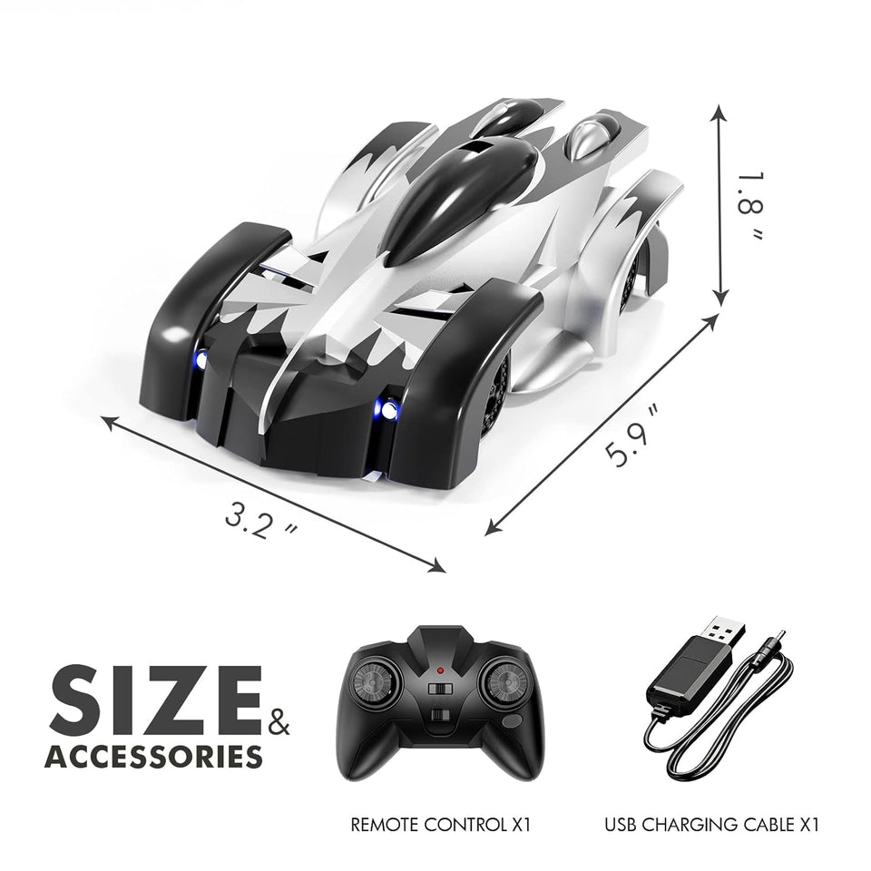 * This novel remote control car with aerodynamic design has Wall/Floor Dual Modes, it can climb steadily on the ground, smooth walls, mirrors, windows, and even on the ceiling.