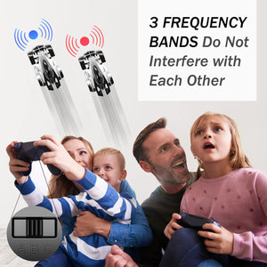 It has "A/B/C" 3 channels that supports 3 players at the same time when adjusting the remote controller to the same channel.