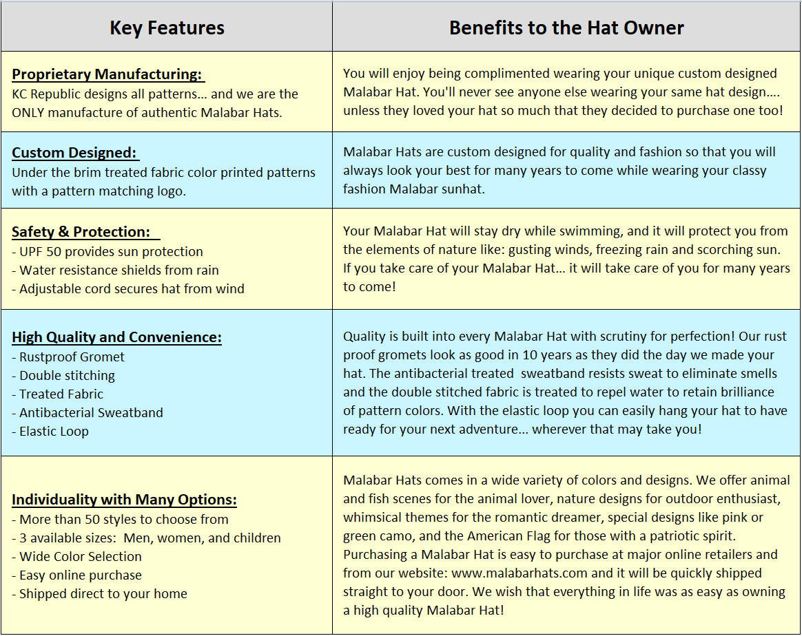 - Malabar Hat Co. Straw Hats With Printed Pattern Underbrim Keeps You Cool and Protected From Sun Damage.