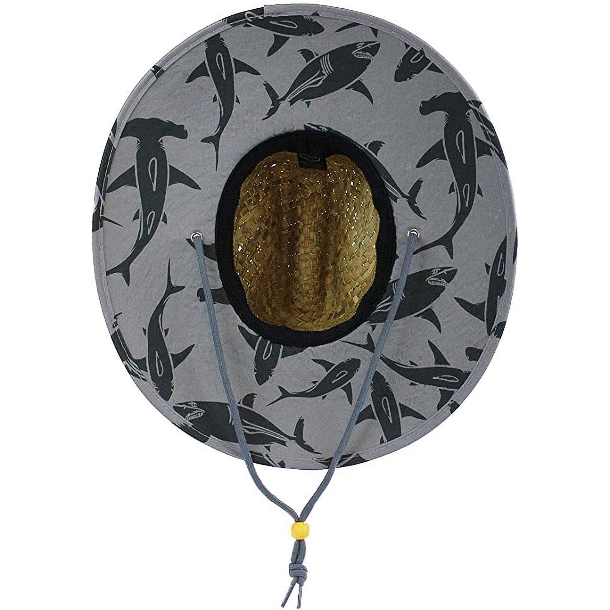 Shark Kids Fabric Pattern Print Straw Children's Sunhat, Boy & Girl, Ages 3+, Lifeguard Hat, Beach, Swim, Cruise, Paddle Board, Boat, Fishing, Fits All, Malabar Hat