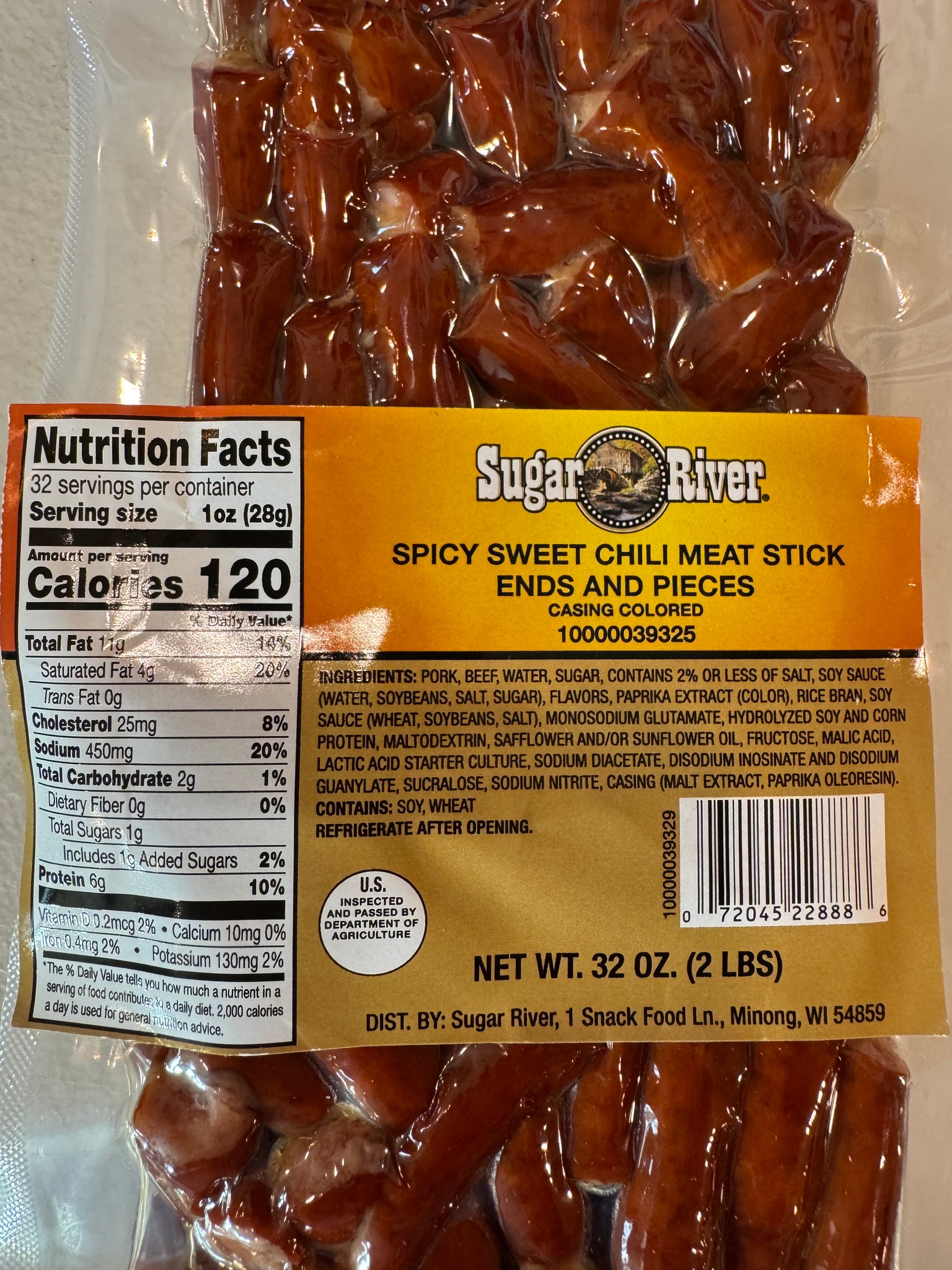 Sugar River Meat Snack Links Ends & Pieces 2 lbs (Spicy Sweet Chili Meat Stick)