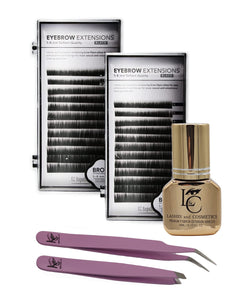 Eyebrow Extensions Premium Kit with 2 Trays of Mink Eyebrows in Black Color, Comes on Mixed Length Trays 5-8 mm Mix, Eyebrow Premium Glue Clear & Dual Pack (Straight & Curved Tip) Extension Tweezers