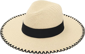 Floppy Sythetic Women’s Wide Brim Straw Sun Hat with Black Band – Foldable Summer Beach Hat for UV Protection