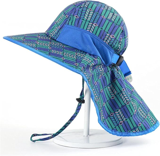 - EXCELLENT SUN PROTECTION, WINDPROOF : Kids sun hats with wide brim and long neck flap, full coverage to shield sunshine from your kids' head, face and neck. UPF 50+ protection effectively blocks harmful UVA & UVB rays on kids delicate skin, ideal for outdoor activities on hot days. It is windproof, the adjustable chin strap is durable and easy to slide up and down, ensuring that the summer cap does not fall in strong winds.